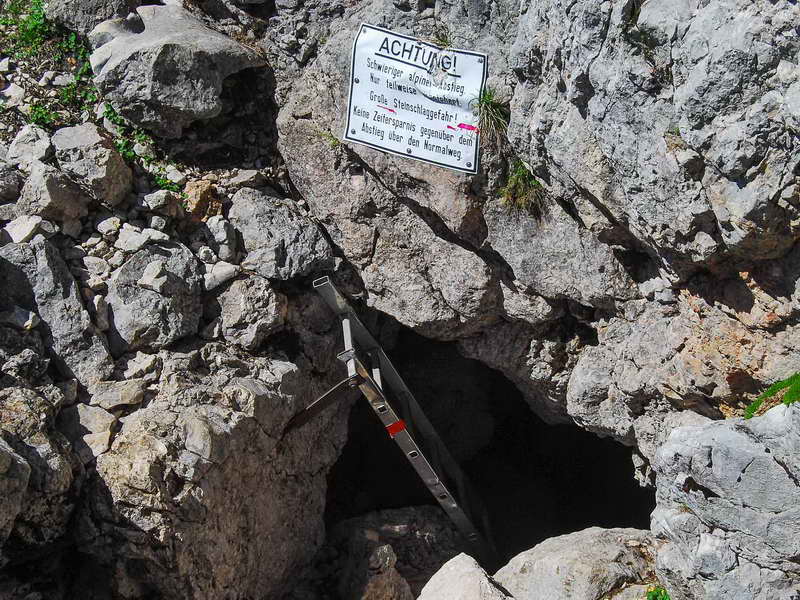 Vom Bahnhof Bischofswiesen 615 m überqueren wir die Bischofswiesener Ache und durchqueren den Ort ostwärts zum Waldrand. Im Wald folgen wir dem Maximiliansreitweg 250 Meter rechts und biegen links bergauf zum Fahrweg ab. (Hier weitere Parkplätze). Auf dem Fahrweg aufwärts erreichen wir den Gasthof Kastensteinerwand Alm 776 m mit schönem Blick über Bischofswiesen. Nun steigen wir, wie in der Roberge-Tour "Großer und Kleiner Rauhenkopf" (siehe Link) beschrieben, auf steilem Waldpfad zum Blauen Kastl, einem Bildstöckl mit Quelle. Weiter nordostwärts durch den Wald geht es stramm hinauf zum Großen Rauhen Kopf 1604 m (es gibt verschiedene Schreibweisen), den wir nach 3 Stunden erreicht haben. Dieser südlich vorgelagerte Nebengipfel des Untersbergstocks lädt uns mit grandioser Aussicht zur Rast ein. Nun wird es ernst: wir folgen nordwärts den Steigspuren durch die Latschen. Der schmale Steig leitet uns, teilweise drahtseilgesichert, ohne Markierung steil hinab in eine Scharte und auf und ab dem Grat folgend hinauf auf die Almhochfläche des Reisenkasers. Wir durchwandern die Almfläche, wo der Wintersturm Kyrill 2007 den Wald entwurzelt hat und eine aufwändige Holzbergung per Hubschrauber erforderte. Dabei überqueren wir den hier unauffälligen Bannkopf 1659 m, der von Osten gesehen die Almbachwand dominiert. Am Gatterl 1616 m, wo sich die Wege von Westen und Osten zum Stöhrhaus treffen, nehmen wir den Normalweg hinauf zum Stöhrhaus des DAV auf 1894 m. 20 Minuten dauert unser Abstecher von der Hütte zum Gipfel des Berchtesgadener Hochthrons 1972 m, mit überragender Aussicht auf die Berchtesgadener Bergwelt und die umliegenden Gebirgsgruppen. Zurück zum Stöhrhaus, könnte man auf der einfacheren Route der Untersbergüberschreitung absteigen. Wir jedoch suchen den schachtartigen Einstieg in das Mittagsloch: In einer Latschenmulde südwestlich der Hütte klettern wir auf einer Leiter in die Dunkelheit einer Höhle. Durch die feuchte Höhle hinab, kommen wir unterhalb der senkrechten Abbrüche der Untersbergsüdwand wieder ans Tageslicht. Nun steigen wir vorsichtig auf den unmarkierten Steigspuren, teilweise mit Drahtseilsicherung, durch das Schrofengelände hinab. Steil, einige Male unangenehm rutschig, geht es südostwärts am Fuß der Untersberg-Südwände mit ihren Kletterrouten entlang. Wir erreichen endlich flacheres Latschengelände und einen Pfad, darauf gehen wir rechts zum Almgebäude des Scheibenkasers 1440 m. Über die Almwiese und durch den Wald wandern wir auf dem Normalweg hinab zu den Höfen von Ettenberg 775 m. Hier halten wir uns rechts und steigen, teilweise mit Drahtseilgeländer, tief hinab in die Schlucht des Almbachs zur Theresienklause 700m. Jenseits der Theresienklause treffen wir auf den mit Treppen und Stegen ausgebauten Klammsteig. Wie in roBerge-Tour "1048 Untersbergüberquerung mit Almbachklamm" (siehe Link) beschrieben, folgen wir dem Steig durch die Almbachklamm hinaus zum Bus Linie 840.