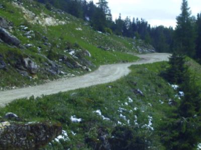 Der Weg beginnt einige hundert Meter asphaltiert, hier recht steil, das ist aber gleichzeitig das steilste Stück des gesamten Weges. Nach ca. 100 Meter geht der Weg in Schotter über. Ab jetzt bleibt es gleichmäßig ansteigend und kurvig. Bis zur Kala-Alm vergehen bei langsamer Geschwindigkeit ca. 35 Minuten. Der Weg ist gut beschildert, die Steigung beträgt teils bis zu 18%.