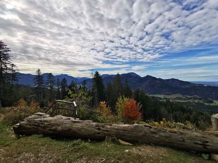 Bei der ersten Gabelung den südlichen Weg nehmen, bei den nächsten drei Gabelungen jeweils rechts halten. Wenn wir uns nicht ganz sicher sind, dann bleiben wir auf der breiten Forststraße. Später können wir uns nach den Schildern zum Zinnkopf richten. Nach mehreren Serpentinen erreichen wir auf einer Höhe von 1025 m eine Abzweigung mit dem Hinweisschild "Zinnkopf 50 Min.". Hier biegen wir rechts ein und stellen nach wenigen Metern unser Bike ab, da der weitere Weg schlecht befahrbar wird. Geradeaus weist ein Schild zum "Aussichtspunkt". Wir aber begeben uns nun auf den breiten, aber steilen Weg Richtung Zinnkopf. Dieser führt in ca. 25 Minuten zum Gipfel, die letzten Minuten auf einem schmalem Steig mit vielen Wurzeln.