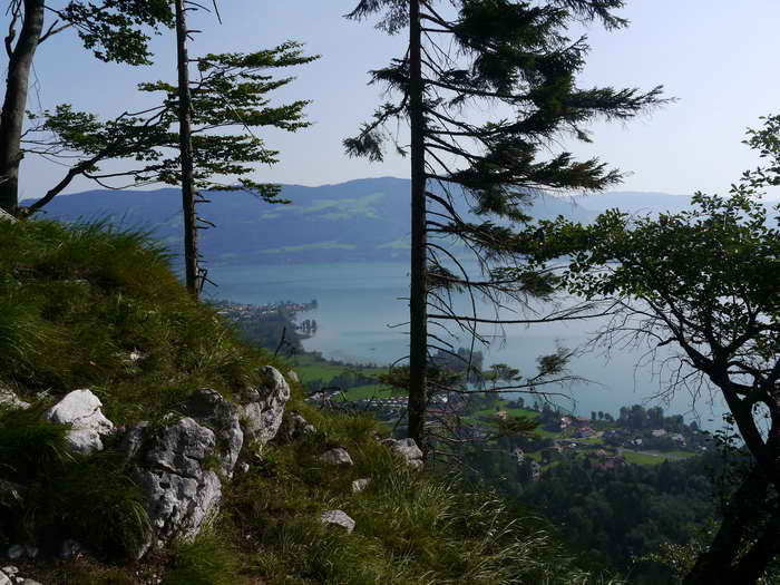 Die Drachenwand - im Salzburger Land direkt am Mondsee gelegen - ist der markanteste Berg dieser Region. Der gleichnamige Klettersteig zählt zu den beliebtesten rund um Salzburg. Vom Gipfel aus genießt man eine phänomenale Aussicht auf den Mondsee, den Attersee und den Schafberg. Der Via Ferrata wird manchmal als Klettersteig für Anfänger bezeichnet, die Schwierigkeit beträgt meist B-C, einige kurze Stellen jedoch C-D. Doch sollte man ihn aufgrund der Länge nicht unterschätzen. Gute Kondition und Schwindelfreiheit sind Voraussetzung. Auch der Abstieg über den Normalweg ist nicht ungefährlich, der örtliche Tourismusverbgand schreibt hierzu: