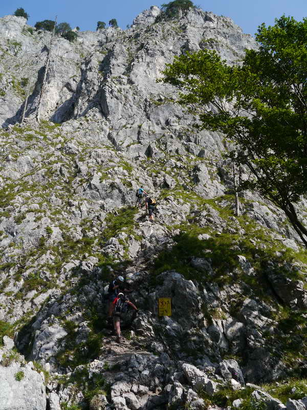 Der Abstieg ist ein alpiner Steig der höchsten Schwierigkeitsstufe! Trittsicherheit, Schwindelfreiheit und alpine Erfahrung auf Steigen der höchsten Schwierigkeitsstufe, sowie adäquate Ausrüstung sind Grundvoraussetzung für einen Einstieg in den Klettersteig ... Leider kommen am Abstieg jährlich Bergsteiger und Klettersteiggeher ums Leben.