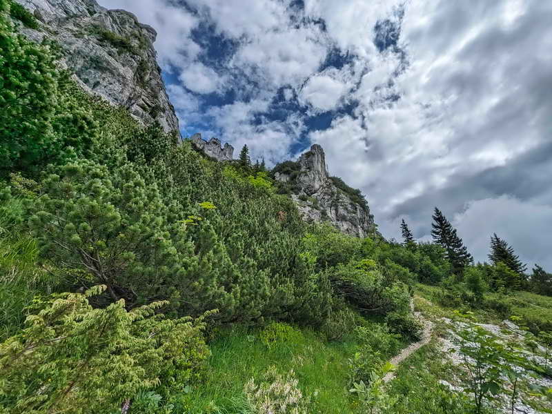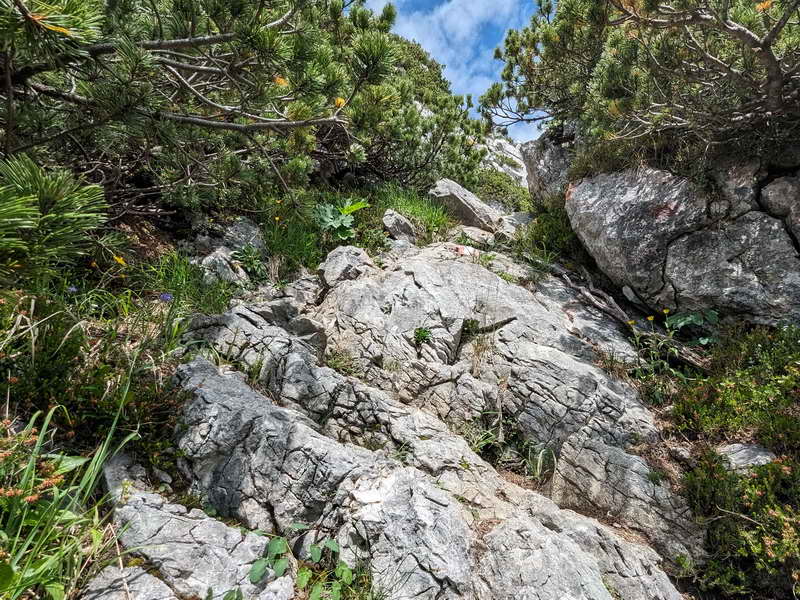 Kurz vor dem Gipfel wird es spannend, denn der teils drahtseilgesicherte letzte Teil vor dem Gipfel ist steil und erfordern etwas Klettergeschick. Um die Runde zu vollenden, erfolgt der Abstieg den bekannten Weg über die Kaisersäle und weiter zur Sonnenalm.