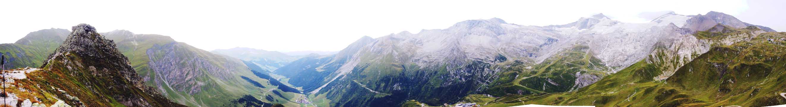 Ringsherum ist eine kleine Fläche, von welcher zwei Wege ausgehen - der eine jäh abfallend, zieht gerade vorwärts, der andere läuft zur Linken in ein Tal ein, das sich weithinaus in die Runde zieht. Seine glatten, steilen Seiten sind baum- und buschlos, aber mit schönem Grün bekleidet. Durch dieses Tal geht auch ein Weg nach Hintertux hinunter und manch fremden Wanderer, der ohne Führer von dort heraufkam ist es schon begegnet, dass er den stillen Pfad, der durch diese einsame Weiden hinabführt, für den Weg nach Schmirn hielt, und daher zu einiger Schadenfreude der Tuxer wieder ins Tal hinunter fand, aus welchem er eben heraufgestiegen war ..."
