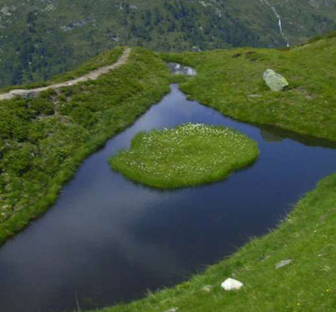 Das sanfte Grün rund um das "Auge Gottes" lädt zu einer gemütlichen Rast ein. Es ist ein kleiner Tümpel, der innerhalb eines kleinen Bogens einer Moräne liegt. Die Gschlößler Hirten gaben ihm diesen Namen, da der Teich eine dreieckige Form hat, während die kleine Insel in seiner Mitte die Form eines Augapfels hat. Die Insel ist voll mit leuchtendem Wollgras bewachsen.