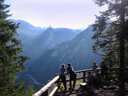 Nach einer deftigen Brotzeit auf der Kührointhütte lohnt auf jeden Fall ein kleiner Abstecher zum Aussichtspunkt Archenkanzel. Man fährt hierzu am besten 50 Meter hinter der Alm zurück zu der Wegekreuzung. Hier rechts abbiegen und der Beschilderung zur Archenkanzel bzw. Rinnkendlsteig folgen. Nach einem Bus-Wendeplatz geht es nochmals 10 Minuten leicht nach unten, teilweise Schiebestrecke. Die letzten 400 Meter zur Archenkanzel dürfen offiziell nicht mehr mit dem Rad zurückgelegt werden. Von ihr aus hat man einen sehr schönen Panoramablick auf den Königssee und das Steinerne Meer.
