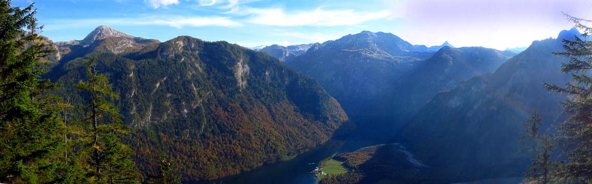 Eine mittelschwere (aufgrund der teilweisen Steigungen) Biketour ins Watzmann-Gebiet. Bei der Kührointhütte angekommen, imponiert besonders der Einblick in das nahe Watzmann-Massiv. Gut 10 Minuten entfernt gelangt man zur Achenkanzel, einem bekannten Aussichtspunkt über dem Königssee.