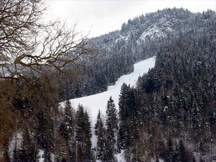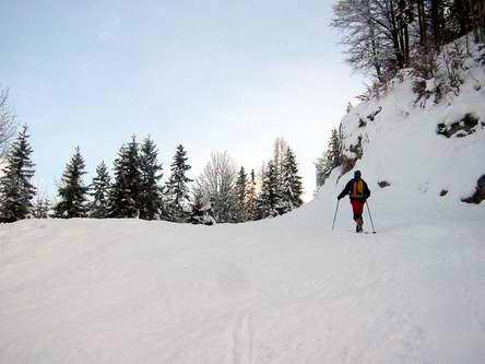 Zugegeben - eine echte Skitour ist dies nicht, denn die Abfahrt erfolgt größtenteils auf einer Skipiste. Allerdings ist der dazugehörige Skilift nicht mehr in Betrieb. sodass man dem normalen Skirummel entgeht.