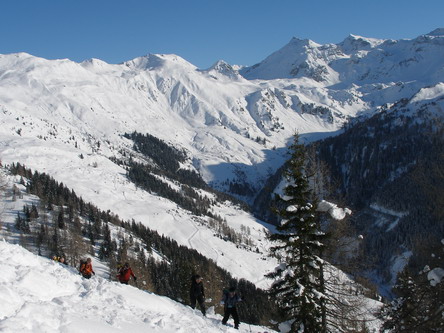 Zum Parkplatz "Naviser Hütte 1380 m" (Achtung - die angegebenen GPS-Daten führen nicht zu diesem Parkplatz): Ebenfalls der Hauptstraße Richtung Liesn folgen, bei einer scharfen Linkskurve kurz nach einer Steinschlaggalerie rechts jedoch die Hauptstraße verlassen und 200 Meter geradeaus dem Weg zum gebührenpflichtigen Parkplatz folgen.