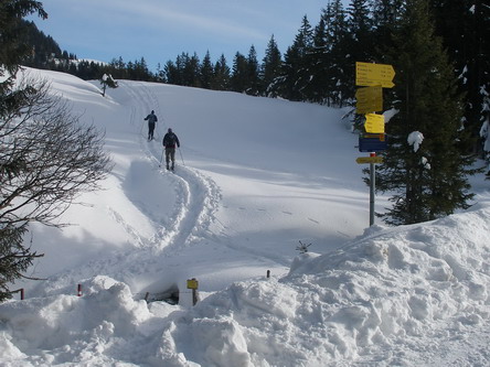 Startpunkt ist beim Geburtshaus des Müllner-Peter im Ortsteil Aschach von Sachrang beim Parkplatz der Kinderlifte (738m). Man steigt über die Piste bis zum Ende des rechten Liftes. Meist gibt es ab hier eine Aufstiegsspur, der man einfach folgt. Geradeaus halten und über eine Rechtskurve in den Wald. Über den Weg zuerst rechts, dann links zu Lichtung. Von ihrerer oberen Ecke aus wiederum rechts durch Wald und über einen steilen Hang. Hier wiederum ganz oben rechts halten und weiter in Richtung Wildbichler Alm. Kurz vor dieser erreicht man eine Forststraße, in die man links einbiegt.