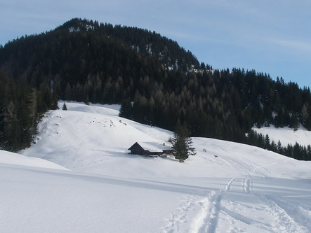 Diese Variante ist am besten im Hochwinter nach frischem Pulver oder bei Firn geeignet. Die Abfahrt erfolgt entlang der Aufstiegsspur. Ab der Wildbichler Alm führen freie Hänge hinunter bis zur Brücke am Parkplatz.