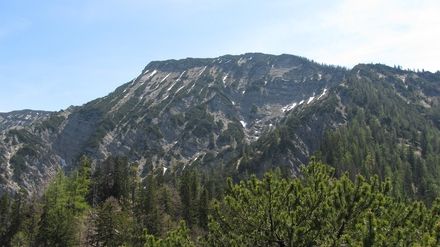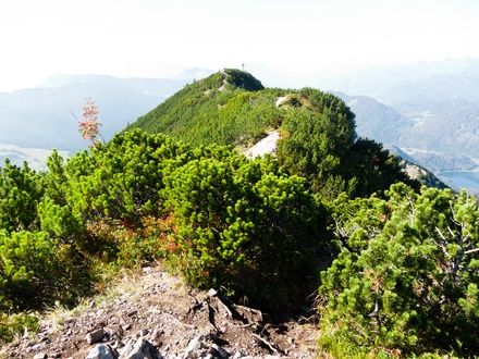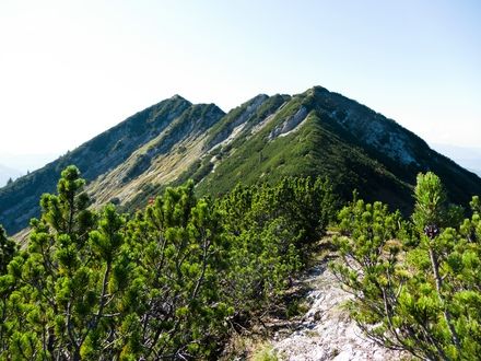 Vom Hausgrabenkopf gehen wir in den Sattel und ca. 200 m den Weg zurück bis wir rechts auf einem Steig abbiegen und oberhalb der Baumleichen vorbei zum Grat aufsteigen. Dieser ist teilweise mit roten Punkten markiert, die aber schwer zu finden sind. Im weiteren Verlauf wird der Steig immer steiler und schwerer zu gehen und des öfteren müssen die Hände zur Unterstützung herangezogen werden. Am Westgrat angekommen schwenken wir nach rechts und gehen durch eine Latschengasse und danach über eine Wiese zum Dürrnbacheck (letzte Einkehrmöglichkeit). Von dort steigen wir über den Normalweg zum Dürrnbachhorn auf.